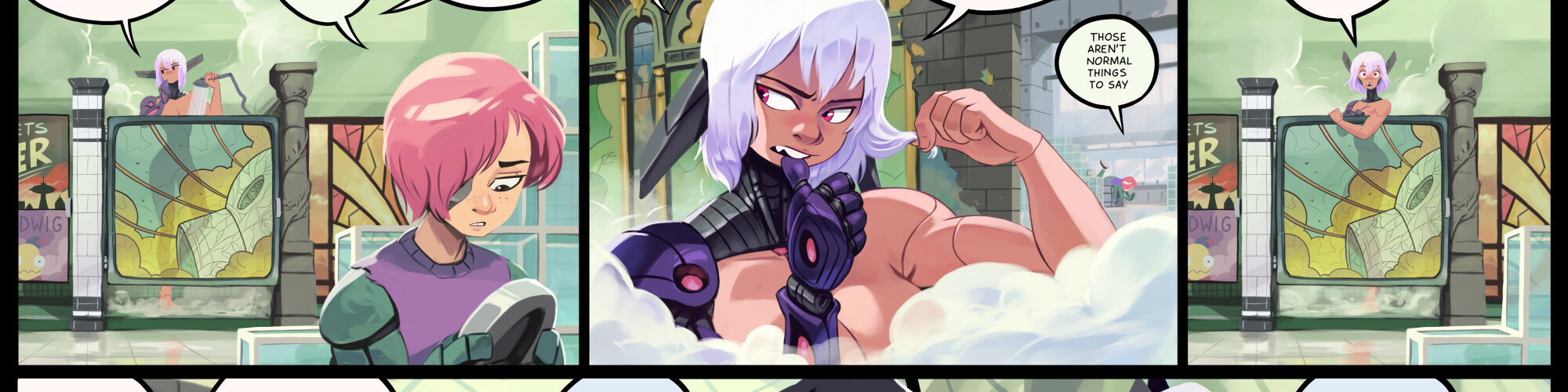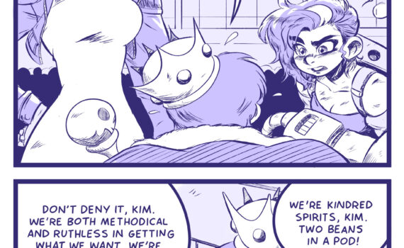 Ling coming in with her unblockable finishing move! Did you know you can read the next page of Dark Science right now on my Patreon? […] Dark Science #136 – The Real Kim